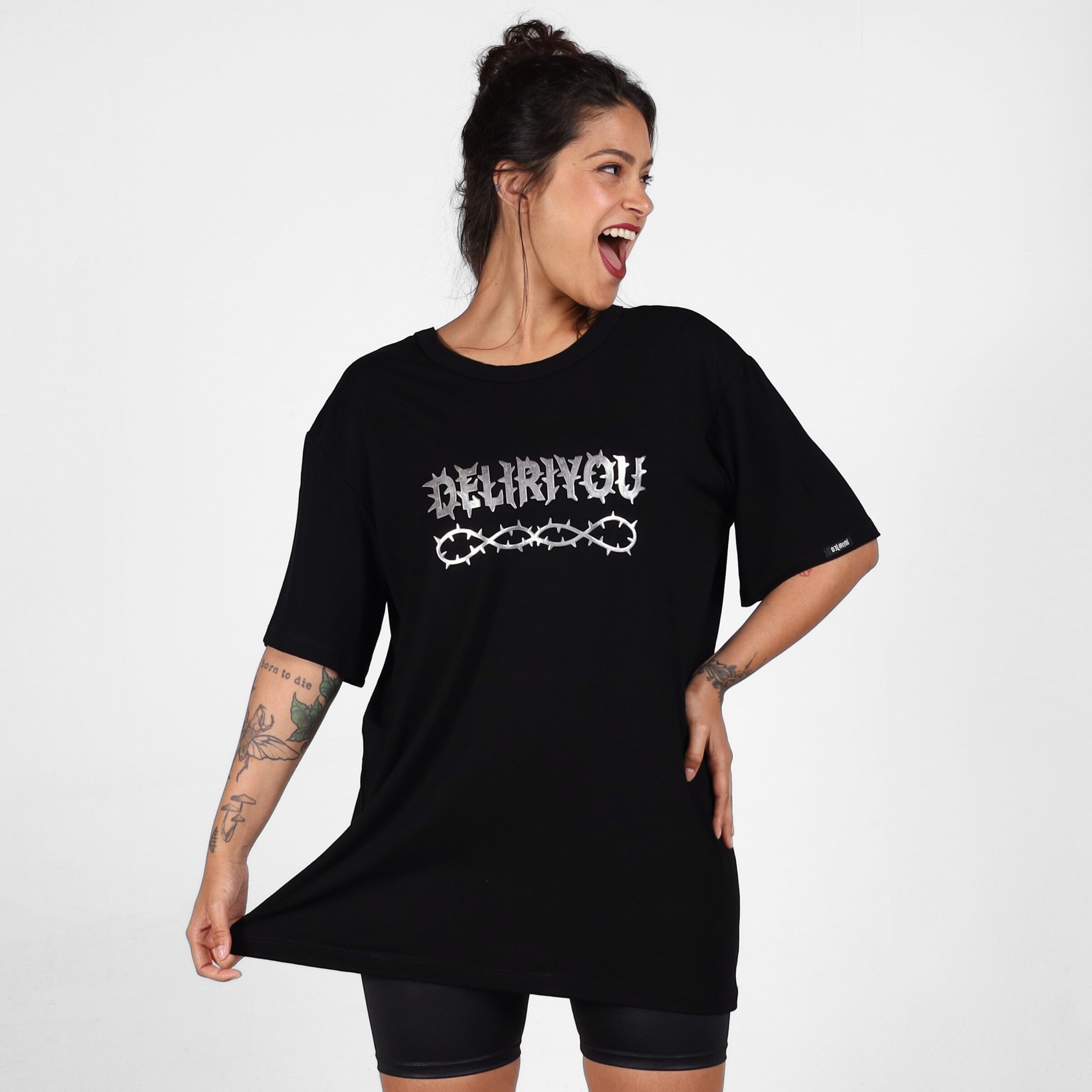 A peça perfeita para quem respira autenticidade e não abre mão da atitude. Confeccionada em viscolycra macia, essa t-shirt preta traz estampa exclusiva DELYRIYOU com efeito metálico em estilo arame farpado, traduzindo a essência ousada e alternativa da marca.